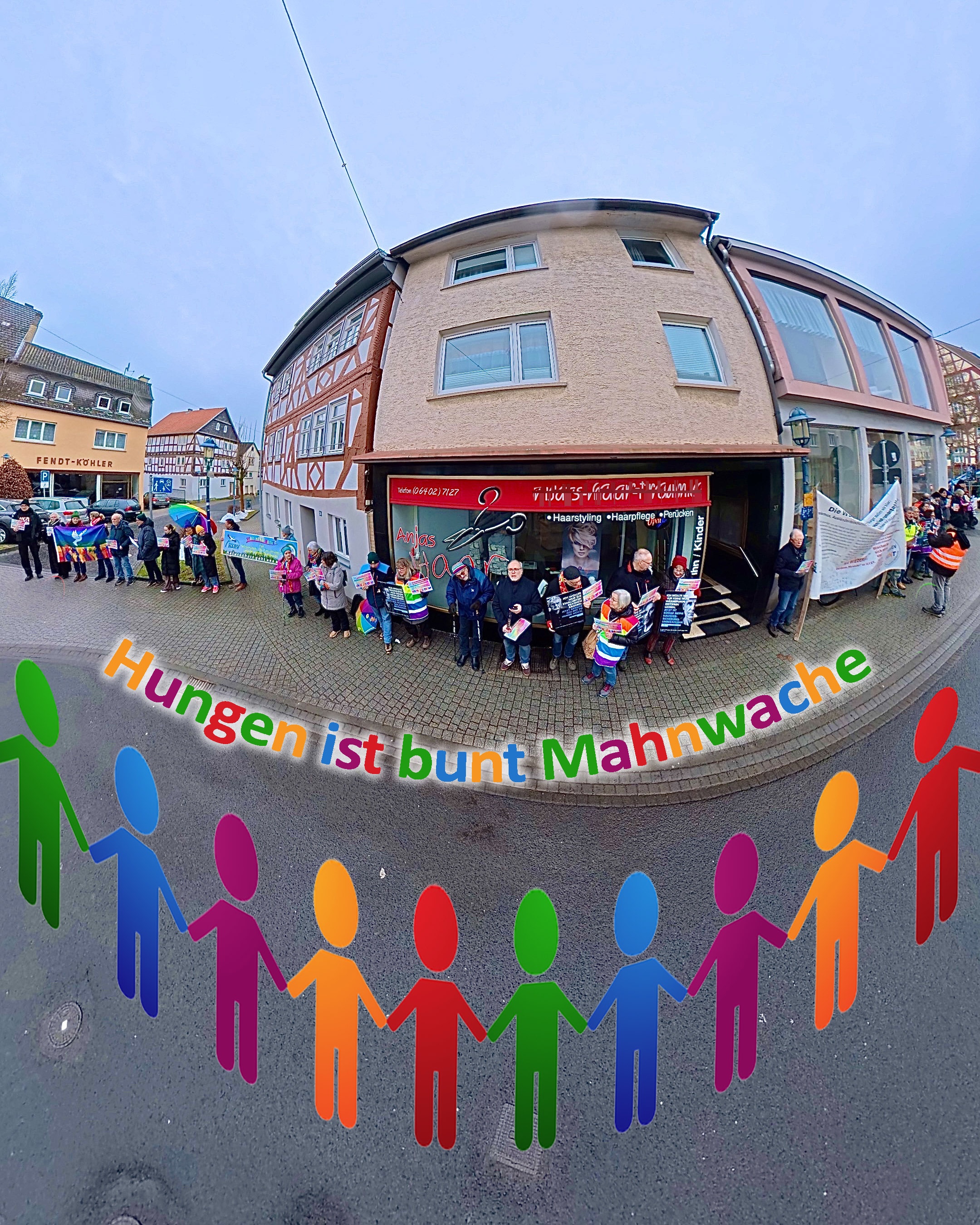 Heute gab es im Licher Ort Ober-Bessingen eine Demonstration für Menschenwürde, Vielfalt und Demokratie mit gut 150 Menschen anlässlich eines “Bürgerdialogs” der blauen Rechten, bei dem 25 Leute ins Bürgerhaus kamen und der nach Augenzeugenberichten immer wieder ein trockener Monolog war.