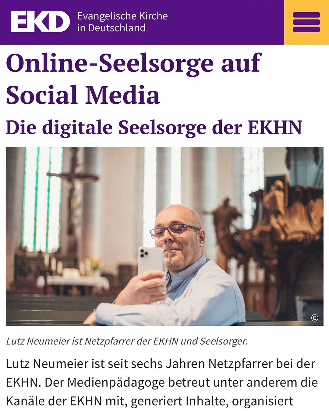 Seelsorge im Internet? Bei der EKD gibt es ein Interview dazu mit mir mit Berichten aus mehr als 25 Jahren Erfahrung mit Seelsorge im digitalen Raum: ekhn.link/ekd26neumeier