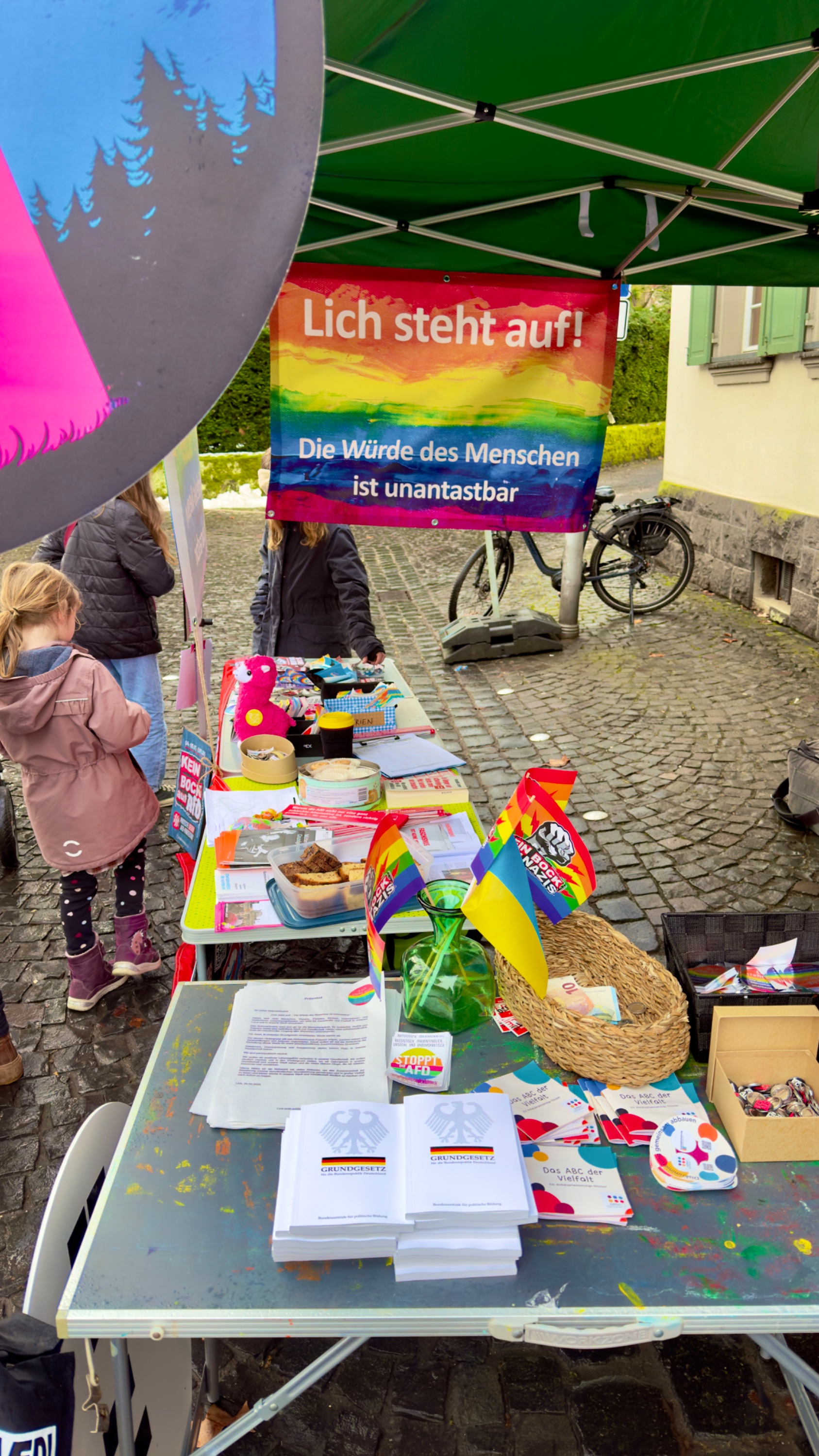 An unserem Stand gab es diesmal auch viel Material, von Aufklebern bis zum Grundgesetz. Danke allen, die dazu beigetragen haben!