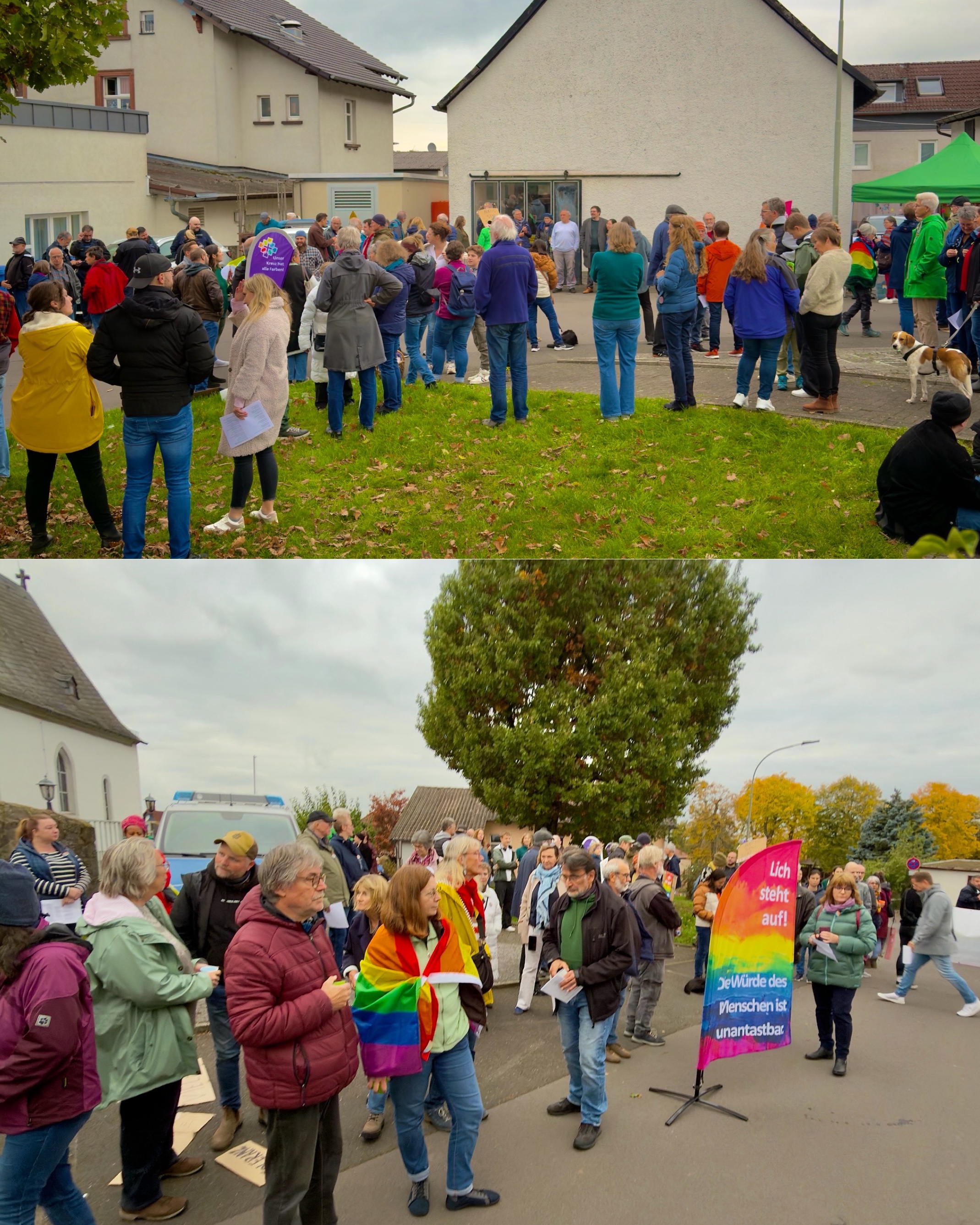 Heute gab es im Licher Ort Ober-Bessingen eine Demonstration für Menschenwürde, Vielfalt und Demokratie mit gut 150 Menschen anlässlich eines “Bürgerdialogs” der blauen Rechten, bei dem 25 Leute ins Bürgerhaus kamen und der nach Augenzeugenberichten immer wieder ein trockener Monolog war.