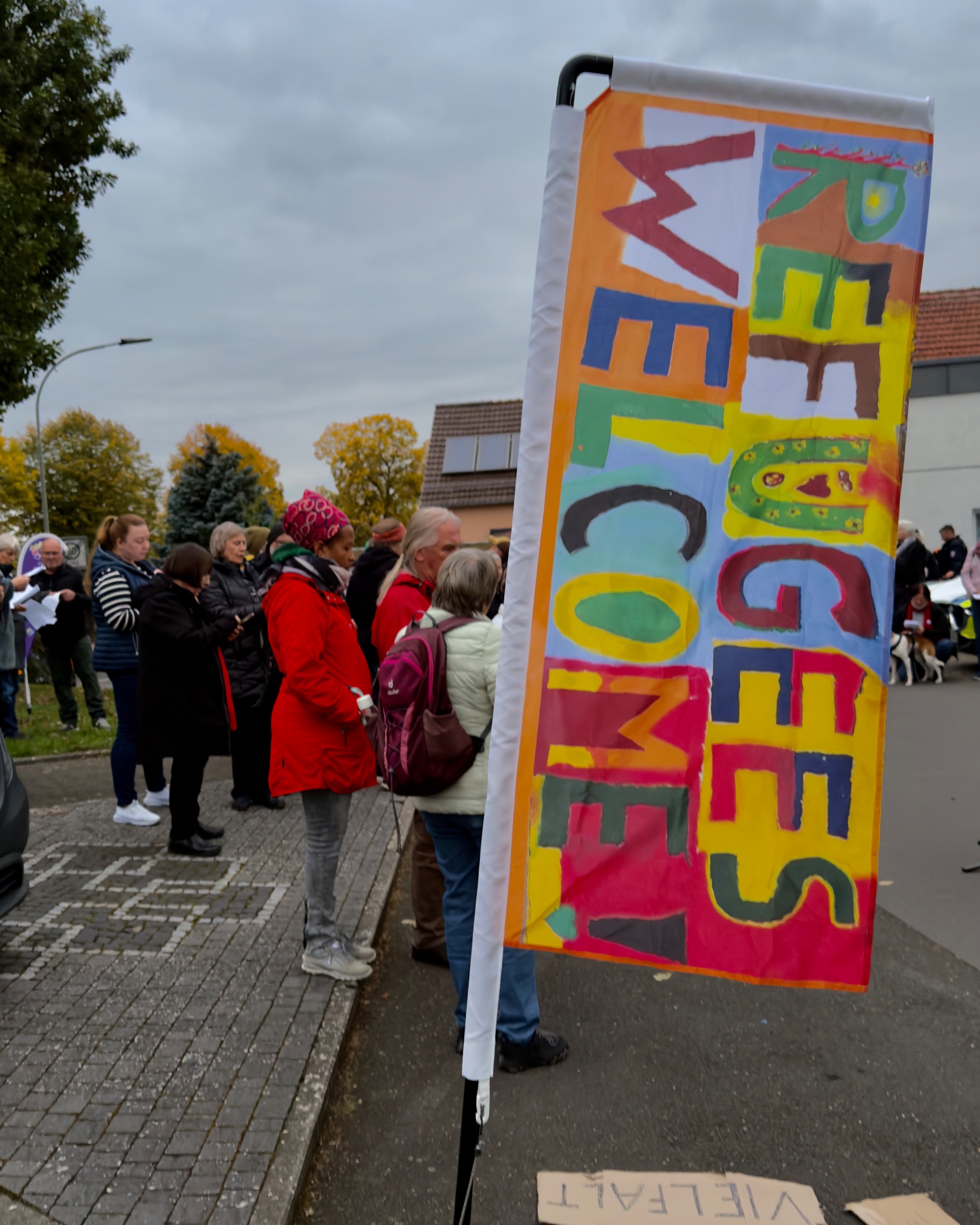 2015 haben Konfis von mir ganz schnell auf Bettlaken ein Willkommensbanner gemalt. Leider ging das damals verloren, aber jetzt lebt es weiter als Beachflag und auch als gedrucktes Banner. Wie wunderbar. 10 Jahre ist das jetzt alt und immer noch wichtig und richtig!